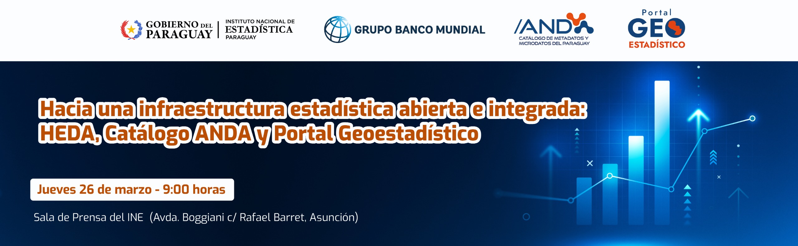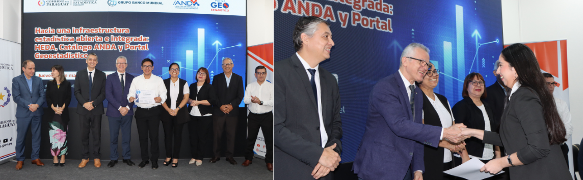 El Instituto Nacional de Estadística (INE) realizó este jueves el acto de presentación de tres nuevas herramientas orientadas a fortalecer la apertura, calidad y uso estratégico de los datos oficiales en Paraguay: la Herramienta de Evaluación de Datos Abiertos (HEDA), el Catálogo ANDA y nuevas capas analíticas incorporadas al Portal Geoestadístico institucional. La actividad se desarrolló con el acompañamiento del Banco Mundial y la participación de representantes de instituciones del Sistema Estadístico Nacional (SISEN), academia y organismos públicos.