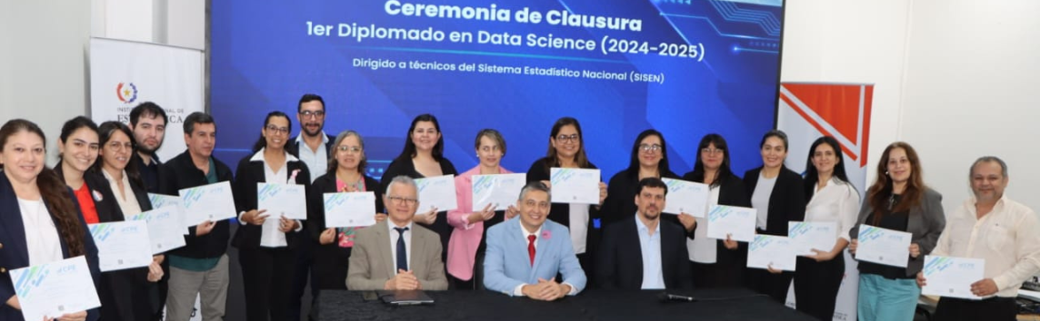 El Instituto Nacional de Estadística (INE) realizó la ceremonia de clausura del Primer Diplomado en Data Science (2024-2025), dirigido a técnicos de las instituciones que conforman el Sistema Estadístico Nacional (SISEN). La capacitación tuvo una duración de diez meses y fue impartida por expertos del Instituto CPE (Conocer para Transformar), con sede en Montevideo, Uruguay.