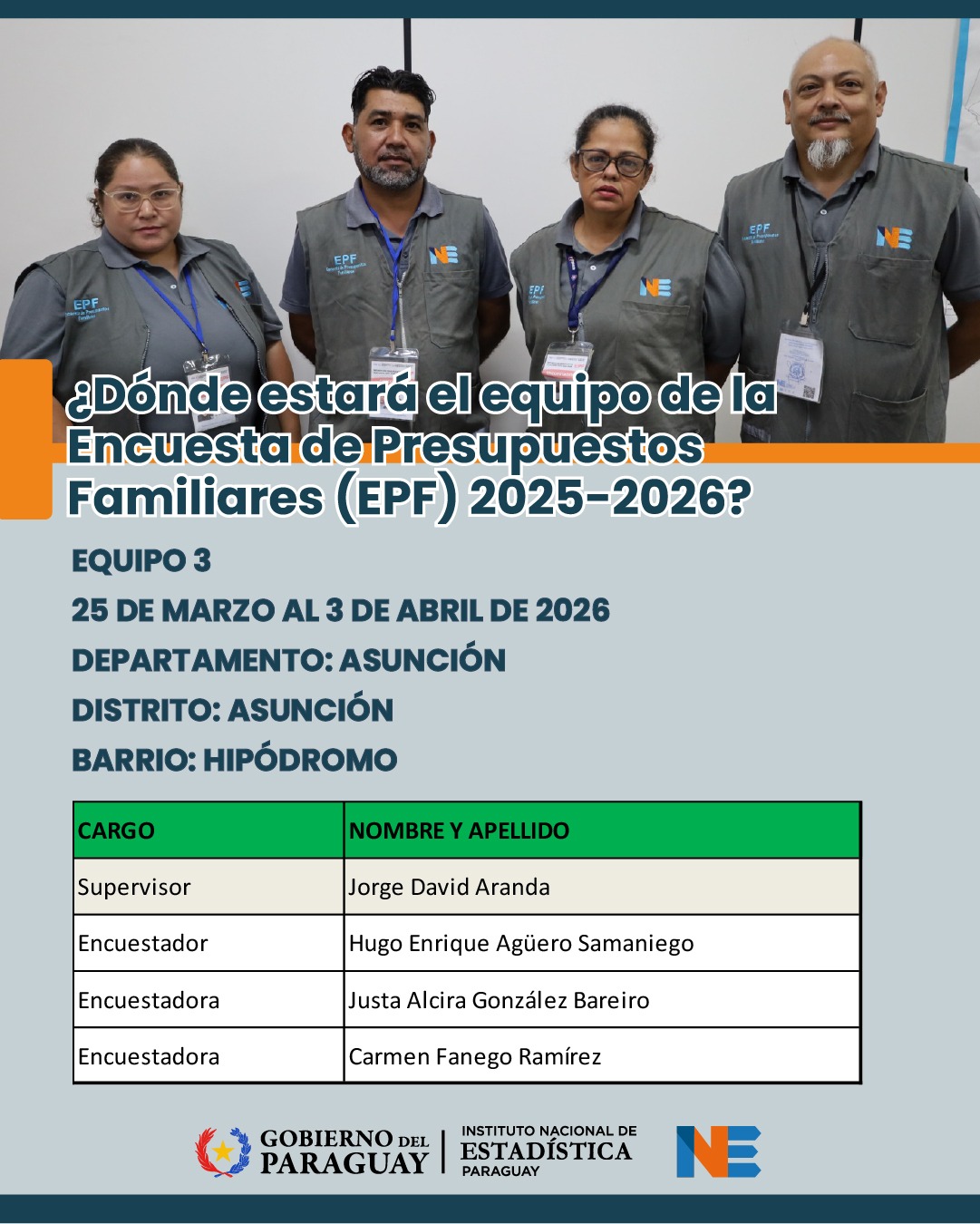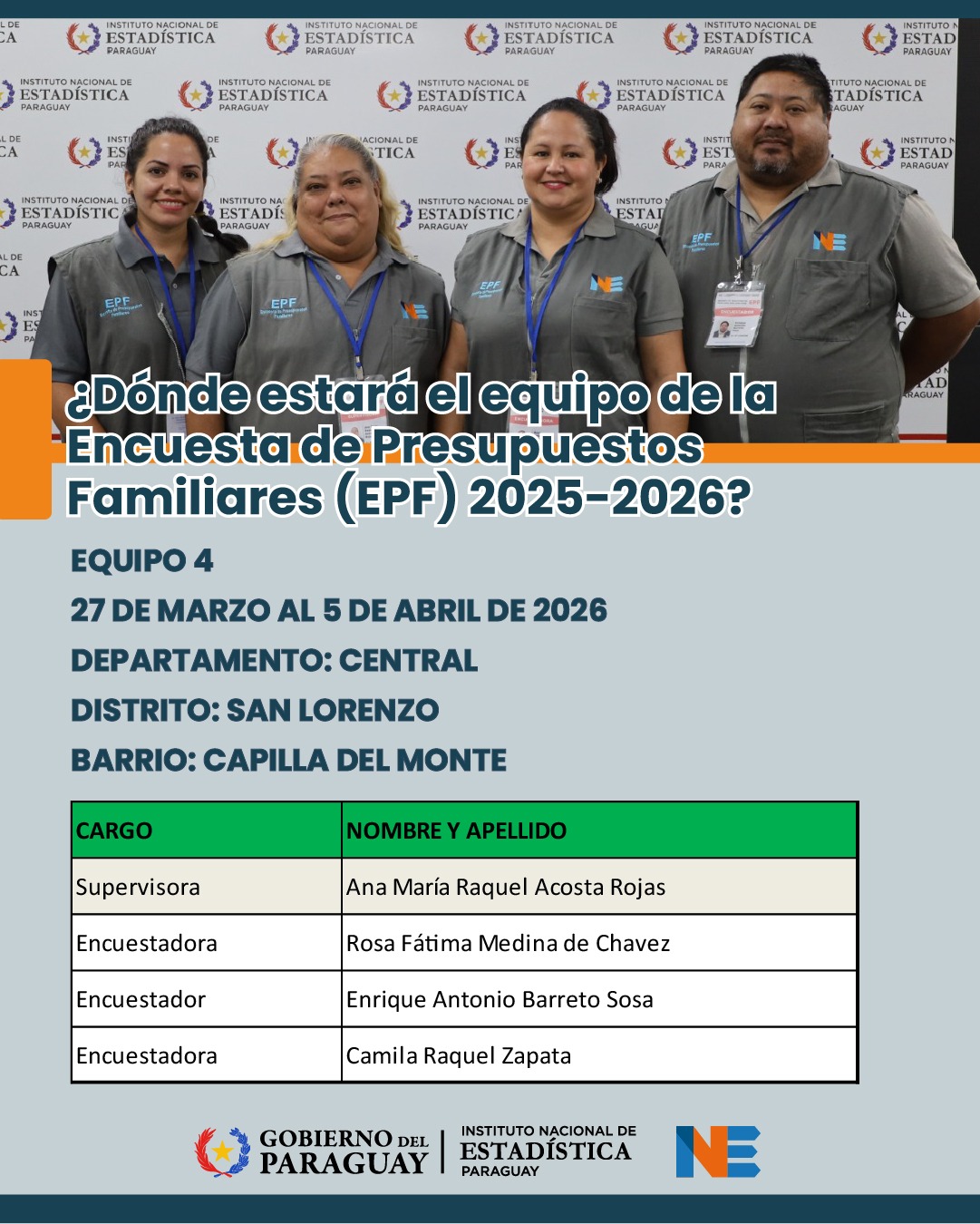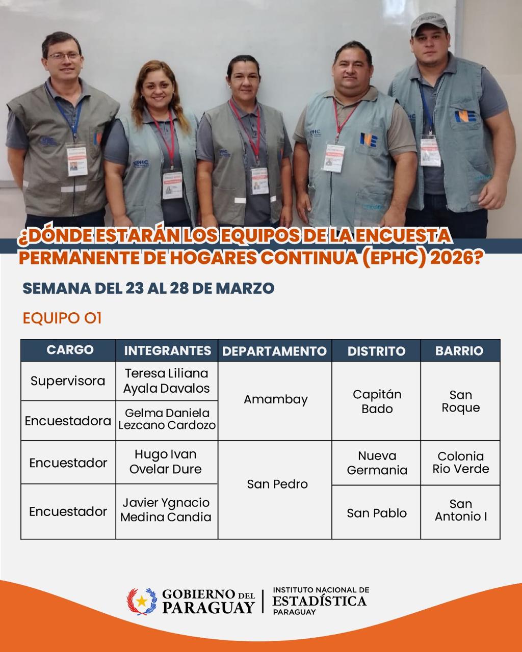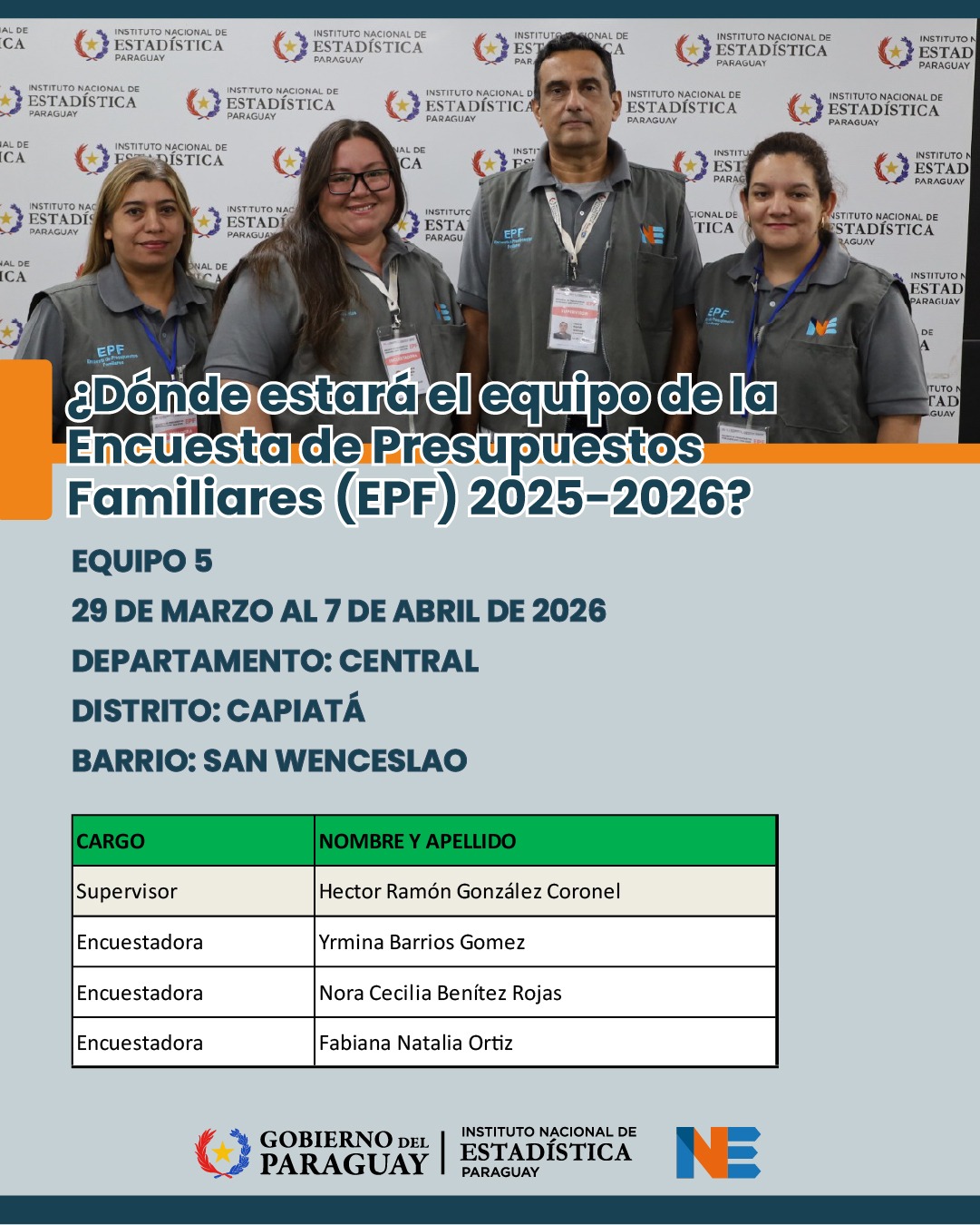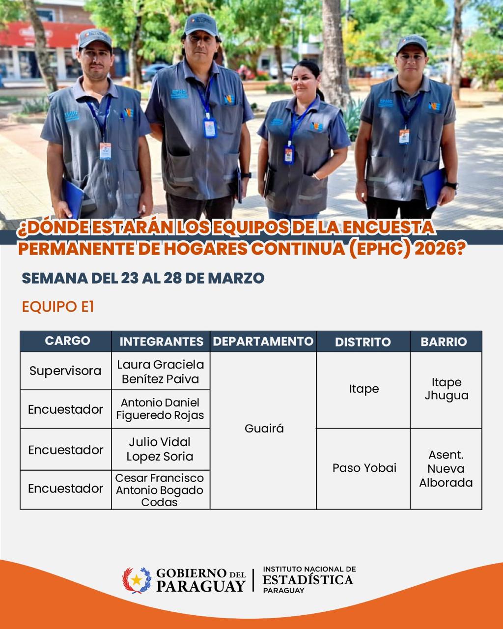 El Instituto Nacional de Estadística (INE) se encuentra recolectando datos en diversos puntos del territorio nacional para generar información acerca de la situación de la población paraguaya.