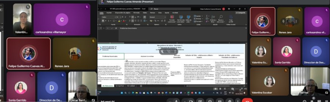 Directivos del INE se reunieron con Claudia Piras, consultora del Banco Interamericano de Desarrollo (BID). Encabezó la reunión el director nacional, Iván Ojeda; junto a Oscar Barrios, director general de Innovación Estadística y Coordinación del SISEN.