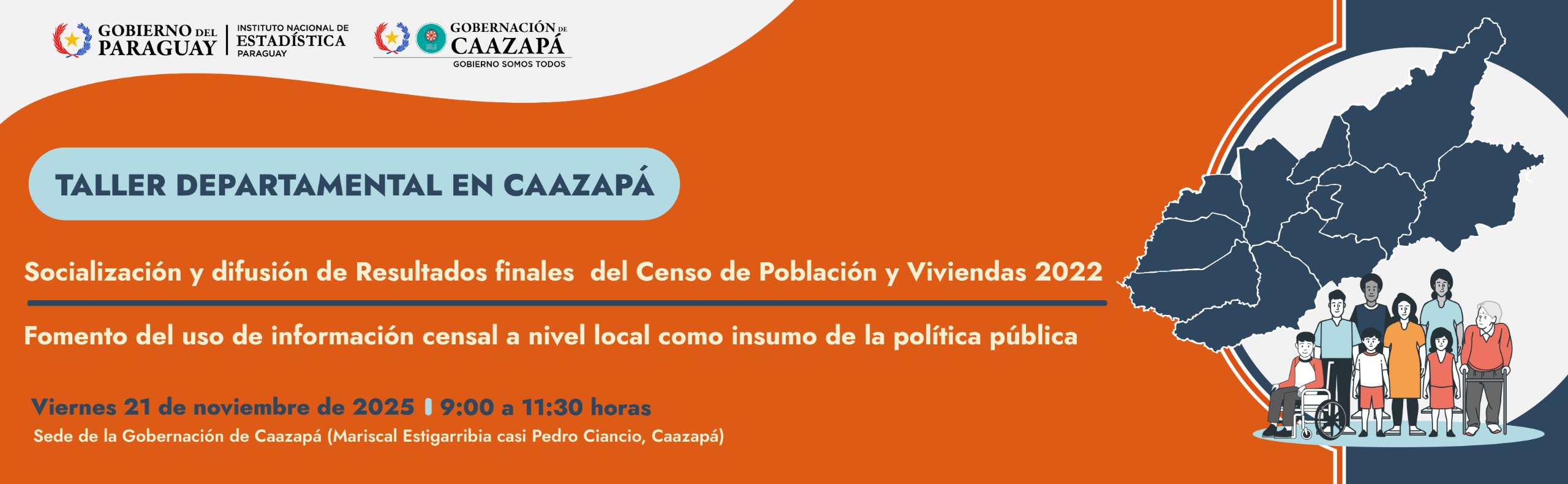 Con el objetivo de transformar los datos estadísticos en herramientas clave para el desarrollo departamental, el Instituto Nacional de Estadística (INE) y la Gobernación de Caazapá organizan un taller técnico enfocado en los resultados del Censo Nacional de Población y Viviendas 2022.