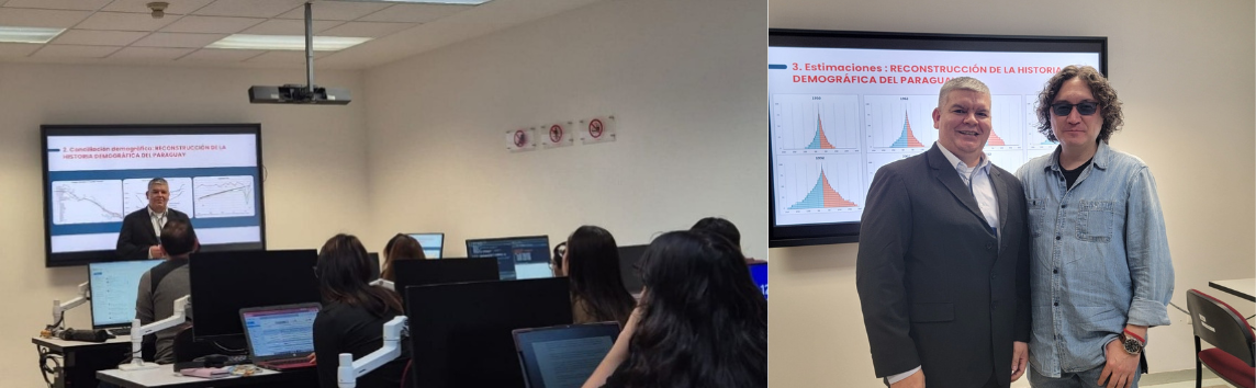 Milciades Brítez Díaz, funcionario del Instituto Nacional de Estadística (INE), fue invitado especialmente para asistir unas sesiones de clases sobre proyecciones estocásticas dentro de la cátedra “Análisis Demográficos”, que se imparte en el marco del prestigioso programa de Maestría en Demografía del Centro de Estudios Demográficos, Urbanos y Ambientales (CEDUA) de El Colegio de México (COLMEX).