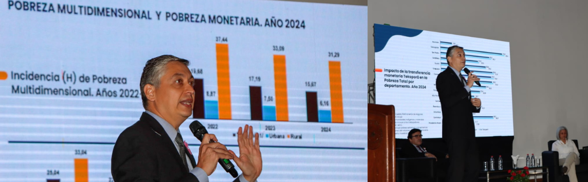 Los datos presentados incluyeron la evolución histórica de la pobreza desde 1997, mostrando una tendencia descendente sostenida, así como los resultados del Índice de Pobreza Multidimensional (IPM), que complementa la medición monetaria y permite identificar carencias en educación, salud, vivienda, servicios básicos y seguridad social.