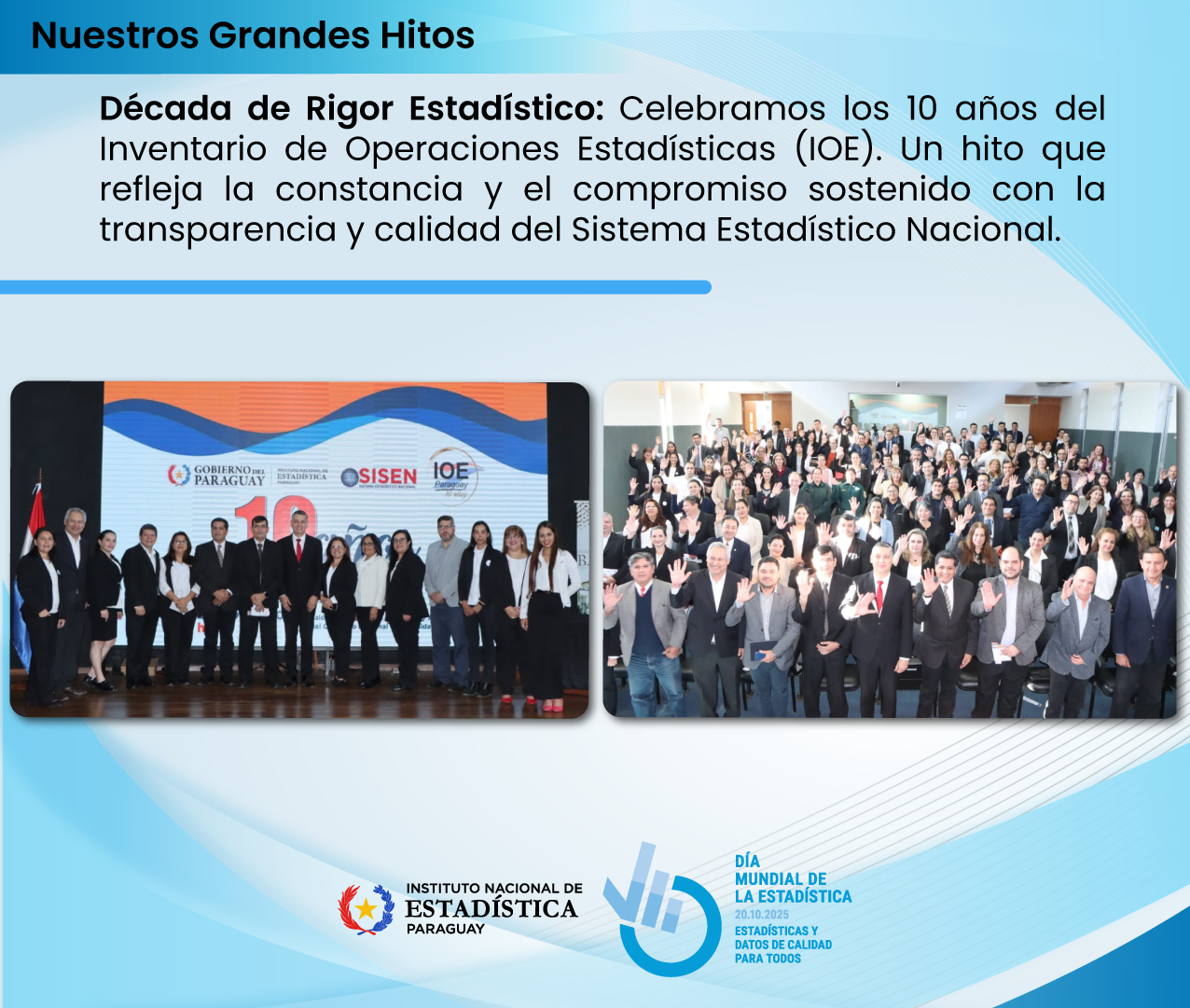 Este trabajo no se detiene. El INE mantiene un pulso constante del país a través de operativos permanentes como la Encuesta Permanente de Hogares Continua (EPHC), y la actualización del Directorio General de Empresas y Establecimientos (DIRGE). Actualmente, también se encuentra liderando la Encuesta de Presupuestos Familiares y la recolección de precios, ambas tareas para el Banco Central del Paraguay.