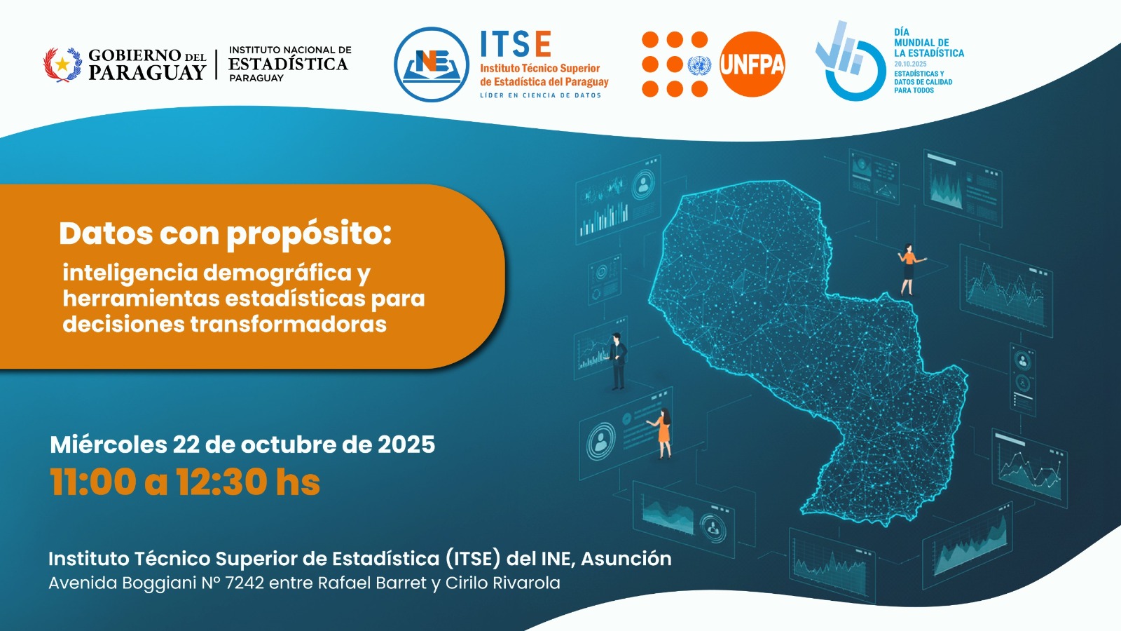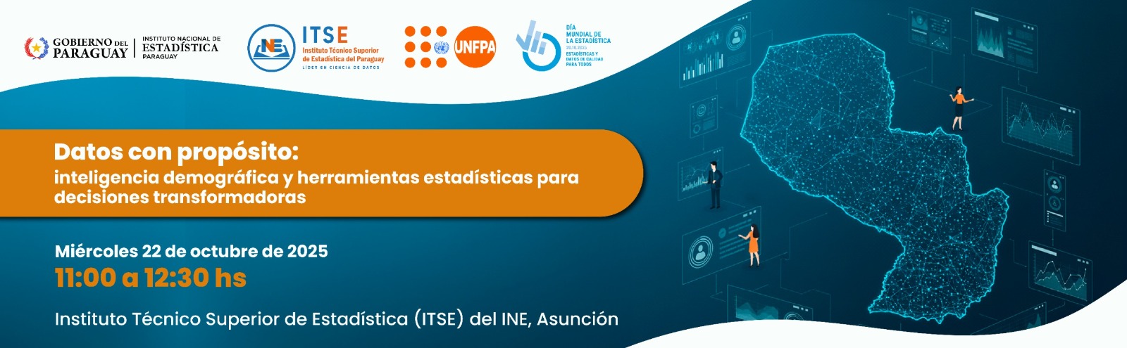 El evento se realizará el día miércoles 22 de octubre a las 11:00 horas en la sede del Instituto Técnico Superior de Estadística (ITSE) del INE (Avenida Boggiani Nº 7242 entre Rafael Barret y Cirilo Rivarola, Barrio Villa Aurelia, Asunción) y contará con la participación del Director Nacional del INE, Iván Mauricio Ojeda Aguilera, la Representante Nacional de UNFPA, Rocío Galiano Marés, además de invitados de instituciones públicas, organismos cooperantes y la academia.