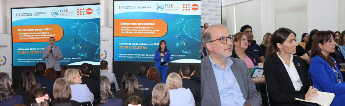 Encabezaron el evento el director nacional del INE, Iván Ojeda; junto a Rocío Galiano, representante del UNFPA en Paraguay. Participó además José Antonio Mejía, representante del Banco Interamericano de Desarrollo (BID).