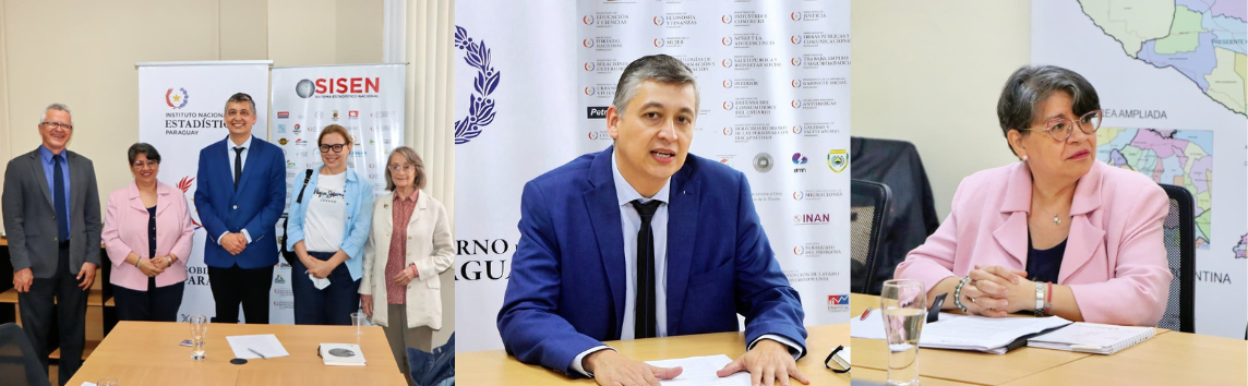 Estuvieron presentes el director nacional del INE. Iván Ojeda; junto a Oscar Barrios, director general de Innovación Estadística y Coordinación del SISEN. Las investigadoras presentes fueron Leticia Carosini, María Victoria Heikel y Rossana Escribano.