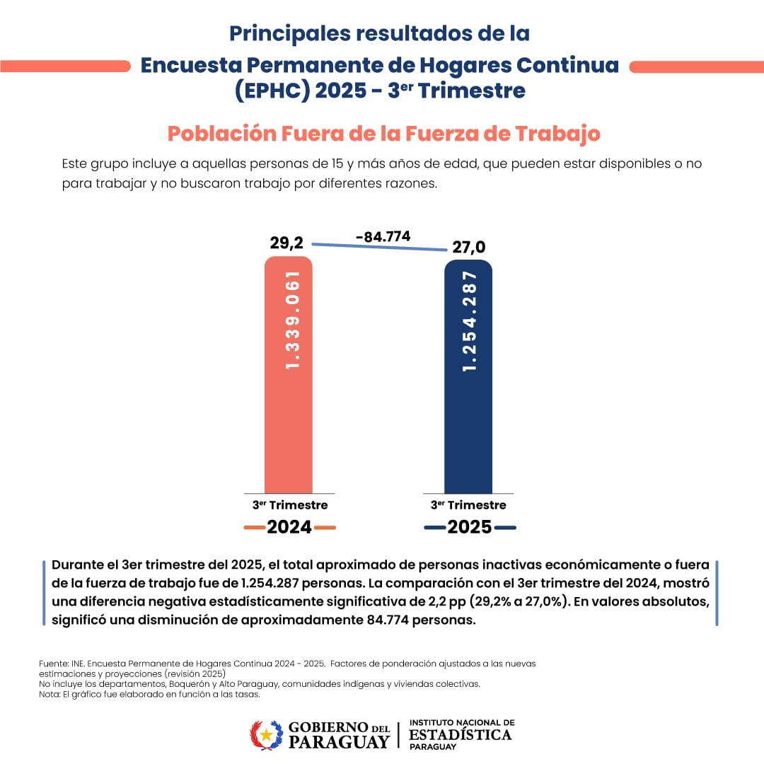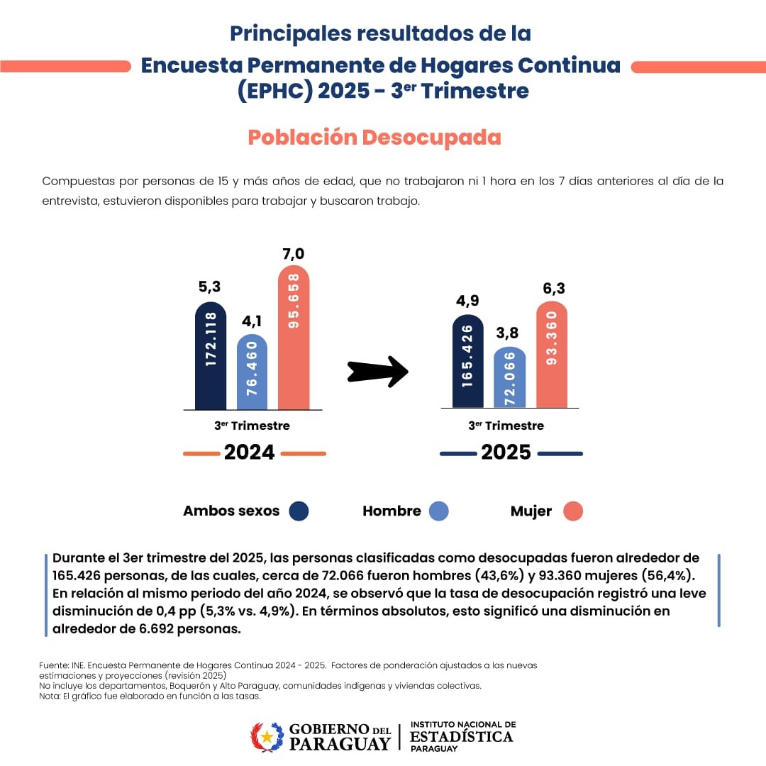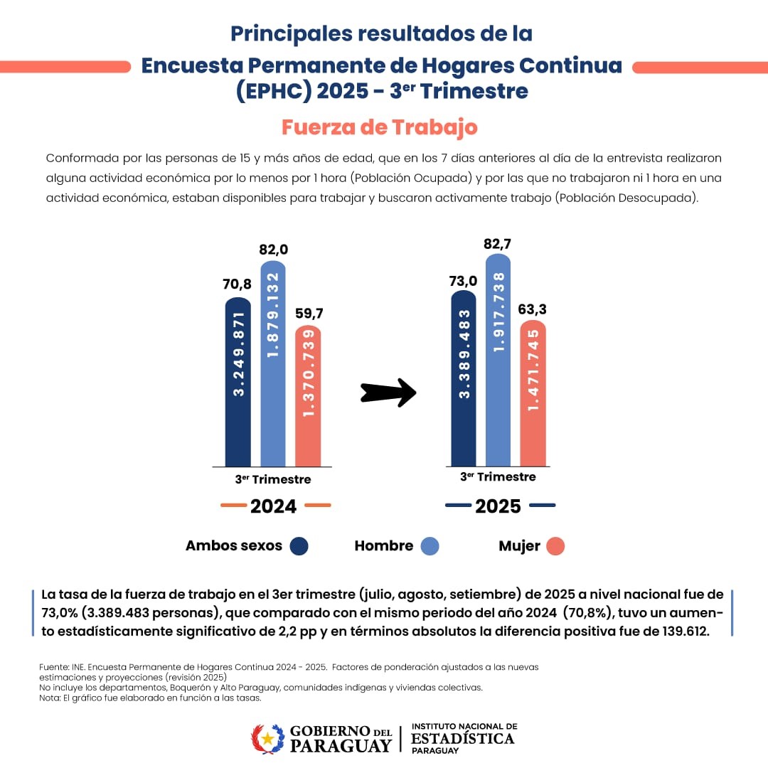 El Instituto Nacional de Estadística (INE) dio a conocer en conferencia de prensa los principales resultados del comportamiento del mercado laboral, a partir de la Encuesta Permanente de Hogares Continua (EPHC) 2025, correspondiente al tercer trimestre.