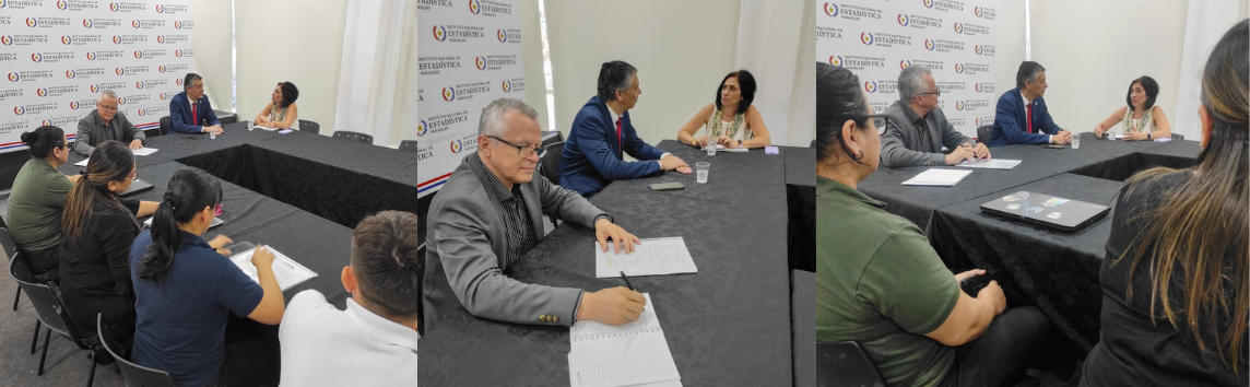 Directivos del INE se reunieron con Claudia Piras, consultora del Banco Interamericano de Desarrollo (BID). Encabezó la reunión el director nacional, Iván Ojeda; junto a Oscar Barrios, director general de Innovación Estadística y Coordinación del SISEN.