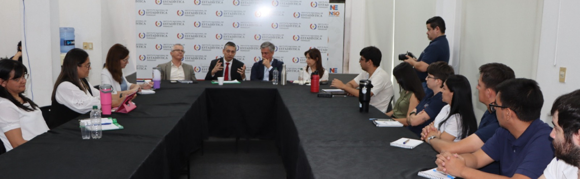 Durante el encuentro también participaron el director jurídico del INE, Leopoldo López; la directora de Gestión de Registros Administrativos, Mirta Leiva, quien presentó un resumen técnico de los progresos; la especialista Elisa Hidalgo; y el equipo de la dirección responsable.