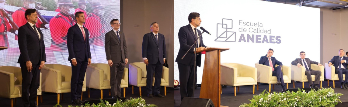 La actividad contó con la presencia del presidente de la República, Santiago Peña; del ministro de Educación, Luis Fernando Ramírez; el presidente de la ANEAES, José Duarte Penayo, autoridades nacionales y representantes del sector académico, y se desarrolló en el Edificio Histórico del Puerto de Asunción.
