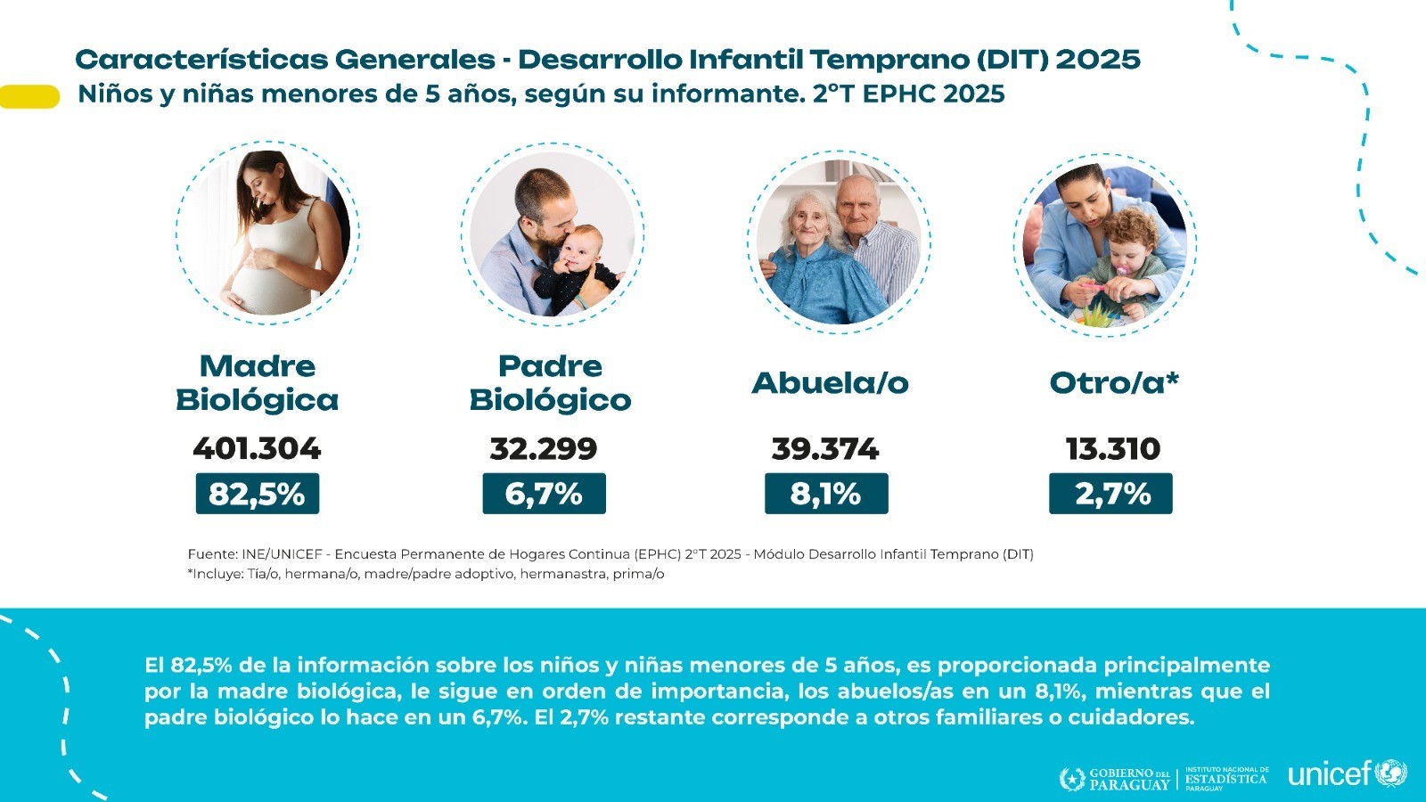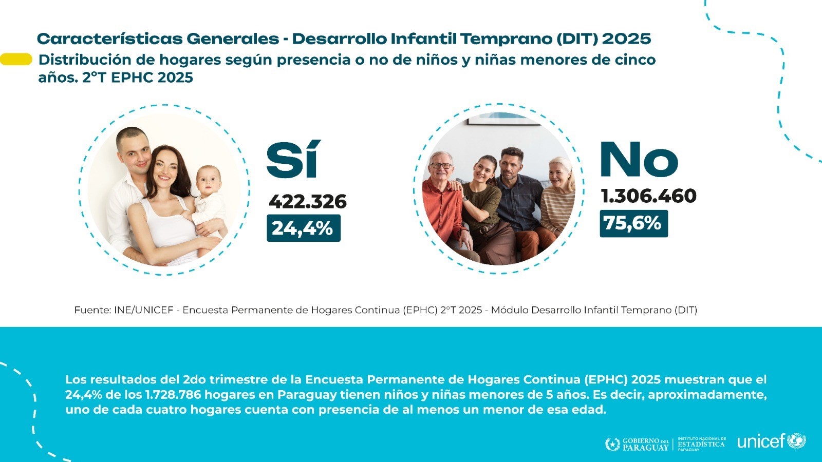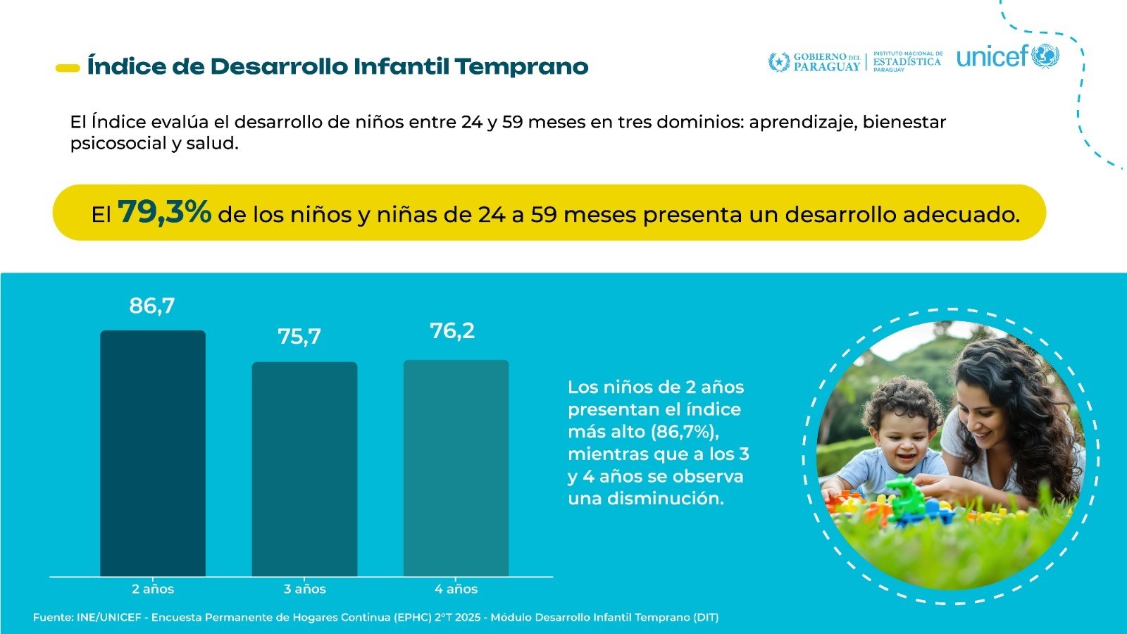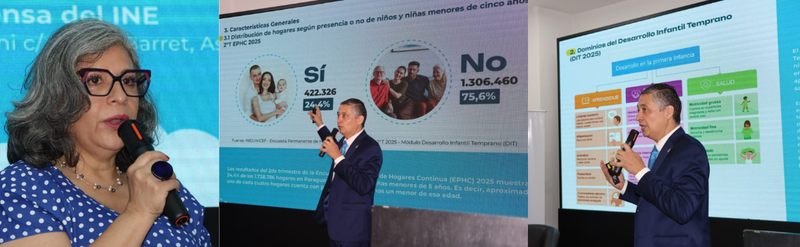 El Instituto Nacional de Estadística (INE) y el Fondo de Naciones Unidas para la Infancia (UNICEF) presentaron información actualizada sobre el Desarrollo Infantil Temprano en Paraguay, resultados que provienen de un módulo aplicado en la Encuesta Permanente de Hogares Continua (EPHC) durante el segundo trimestre del año 2025.