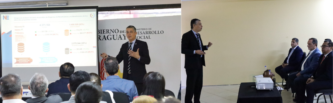 En dicho evento, el director nacional del INE presentó un resumen de la asistencia técnica llevada a cabo por el INE al MDS para la Integración de Bases de Datos de Población y Hogares de Programas Sociales.