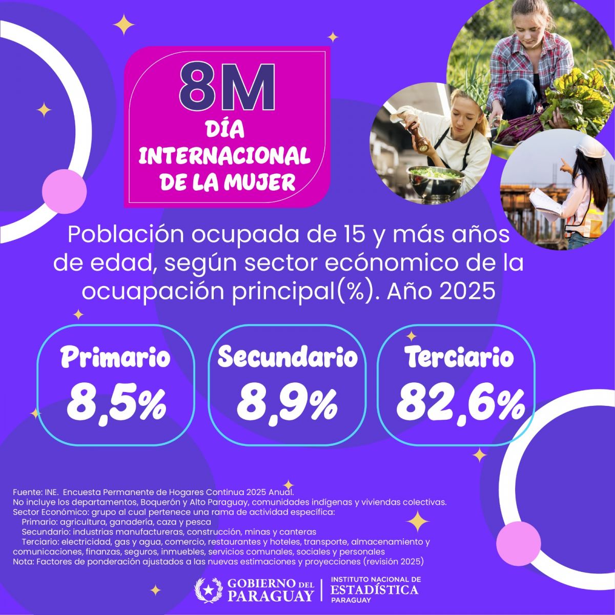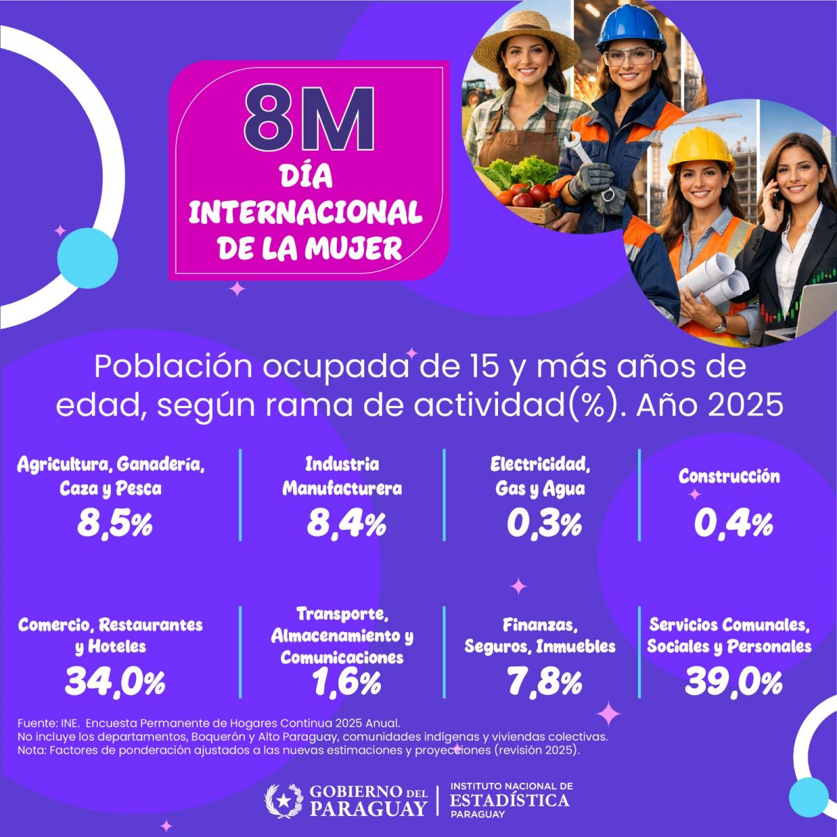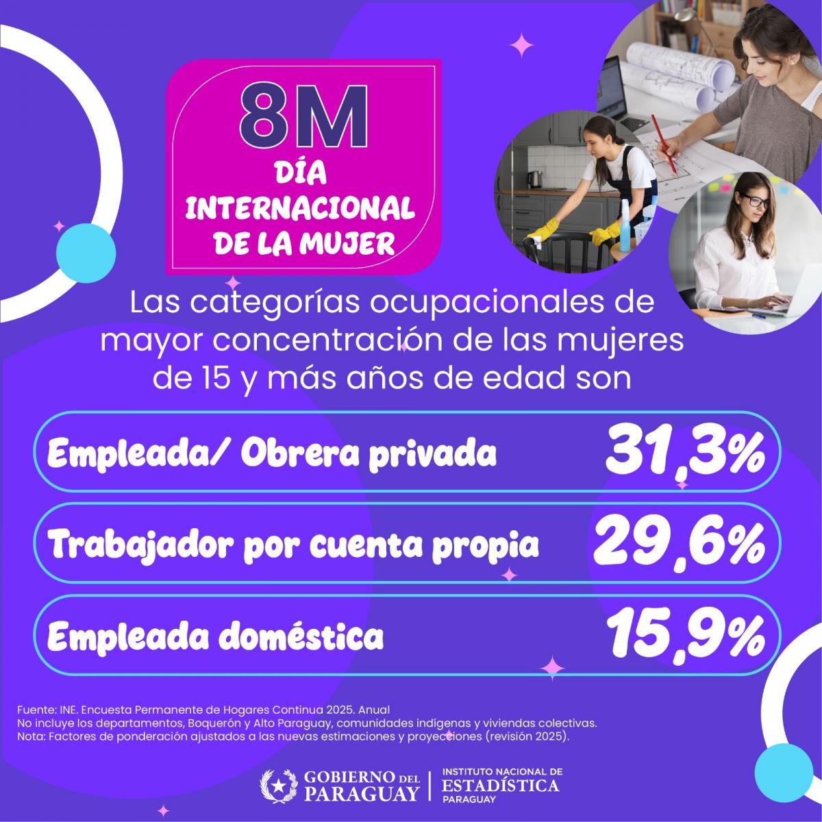 En conmemoración del Día Internacional de la Mujer, el Instituto Nacional de Estadística (INE) presenta datos sobre la participación femenina el mercado laboral, basados en la Encuesta Permanente de Hogares Continua (EPHC) 2025.