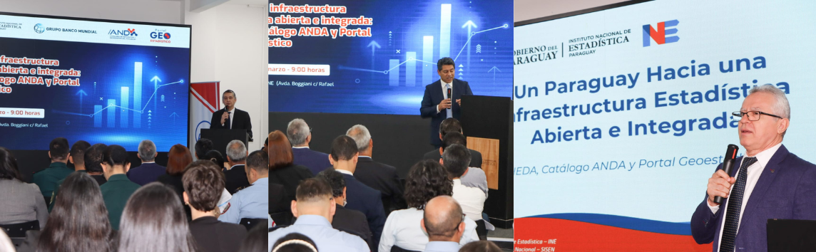 El Instituto Nacional de Estadística (INE) realizó este jueves el acto de presentación de tres nuevas herramientas orientadas a fortalecer la apertura, calidad y uso estratégico de los datos oficiales en Paraguay: la Herramienta de Evaluación de Datos Abiertos (HEDA), el Catálogo ANDA y nuevas capas analíticas incorporadas al Portal Geoestadístico institucional. La actividad se desarrolló con el acompañamiento del Banco Mundial y la participación de representantes de instituciones del Sistema Estadístico Nacional (SISEN), academia y organismos públicos.