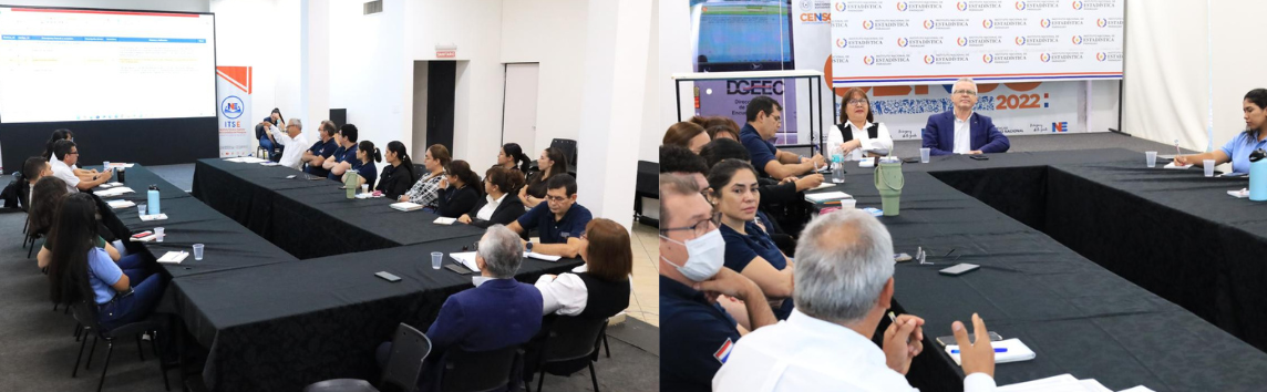 Participaron de la reunión el director general de Innovación Estadística y Coordinación del SISEN, Oscar Barrios; la directora de Innovación y Desarrollo Científico Metodológico, Myriam Dávalos; el director de Estadísticas Económicas y Ambientales, Alcides Nunes y la jefa de Investigación y Análisis de dicha dirección, Nancy Cabrera; el director de Tecnologías de la Información y la Comunicación, José Pérez; la coordinadora estadística de Registros Administrativos, Elisa Hidalgo; la jefa de Información Demográfica de la Dirección de Estadísticas Demográficas, Nelly Ullón, además de técnicos de estas áreas.