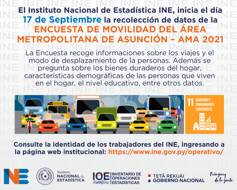 El objetivo de la encuesta es obtener información sobre la movilidad de las personas en el área metropolitana de Asunción, en cuanto a los viajes que se realizan de manera que los datos recogidos permitan desarrollar modelos que puedan generar una matriz de origen y destino, así como el tipo de transporte que utilizan.